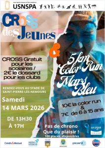 Le club de Nemours Saint Pierre Athlétisme, organise le samedi 14 mars 2026 le cross des jeunes de Nemours sur le stade de St pierre les Nemours. Cette compétition est ouverte aux scolaires pour les élèves de CP jusqu’aux élèves de 5èmes. un flyer sera distribué dans les écoles de