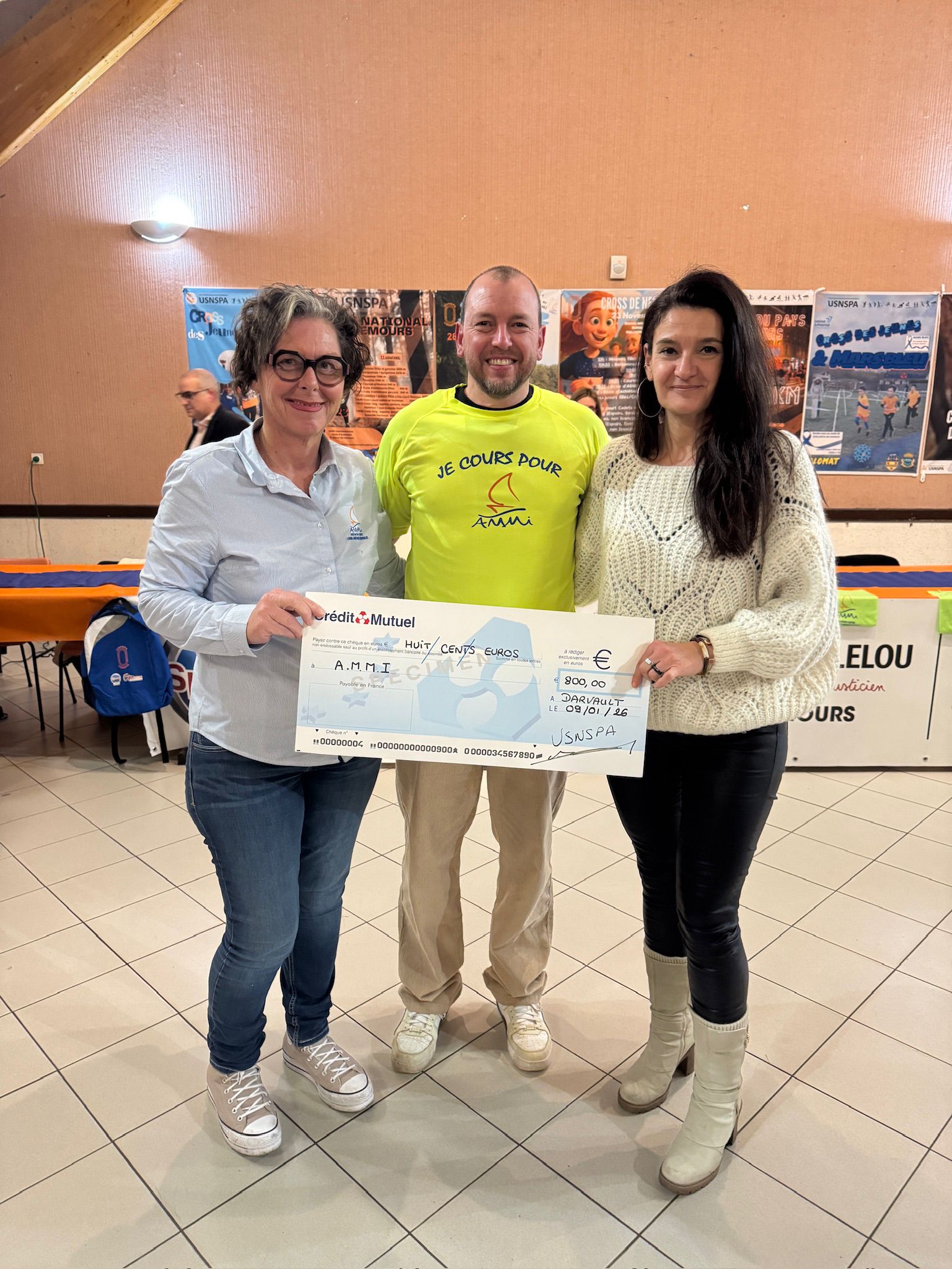 L’association l’AMMI* a aussi fait le déplacement, où la présidente Madame Emma DEL REY a remercié la contribution du club dans l’aide à la recherche. En effet, depuis de nombreuses années maintenant l’USNSPA est partenaire de l’association, qui œuvre dans la recherche des maladies mitochondriales, en reversant les bénéfices des courses du trail du Mont Sarrazin et de la Nemourienne, directement à l’association. Cette année encore, le club est fier de leur remettre un chèque de 800€.